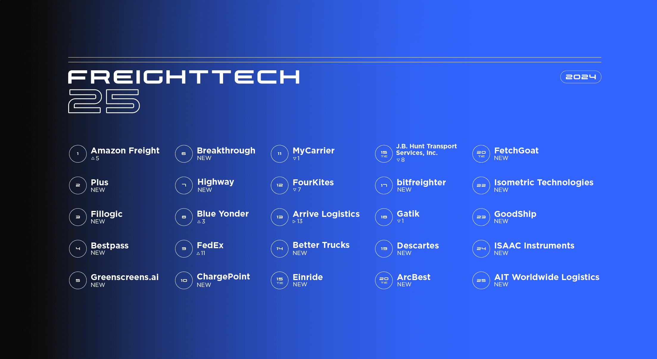 Plus was voted #2 on 2024 FreightTech 25 list, behind Amazon Freight, by a judging panel of transportation investors, CEOs, and senior industry executives. The award recognizes the most innovative and disruptive companies in the transportation industry.